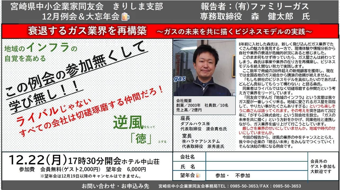 12月のきりしま支部例会の案内😁