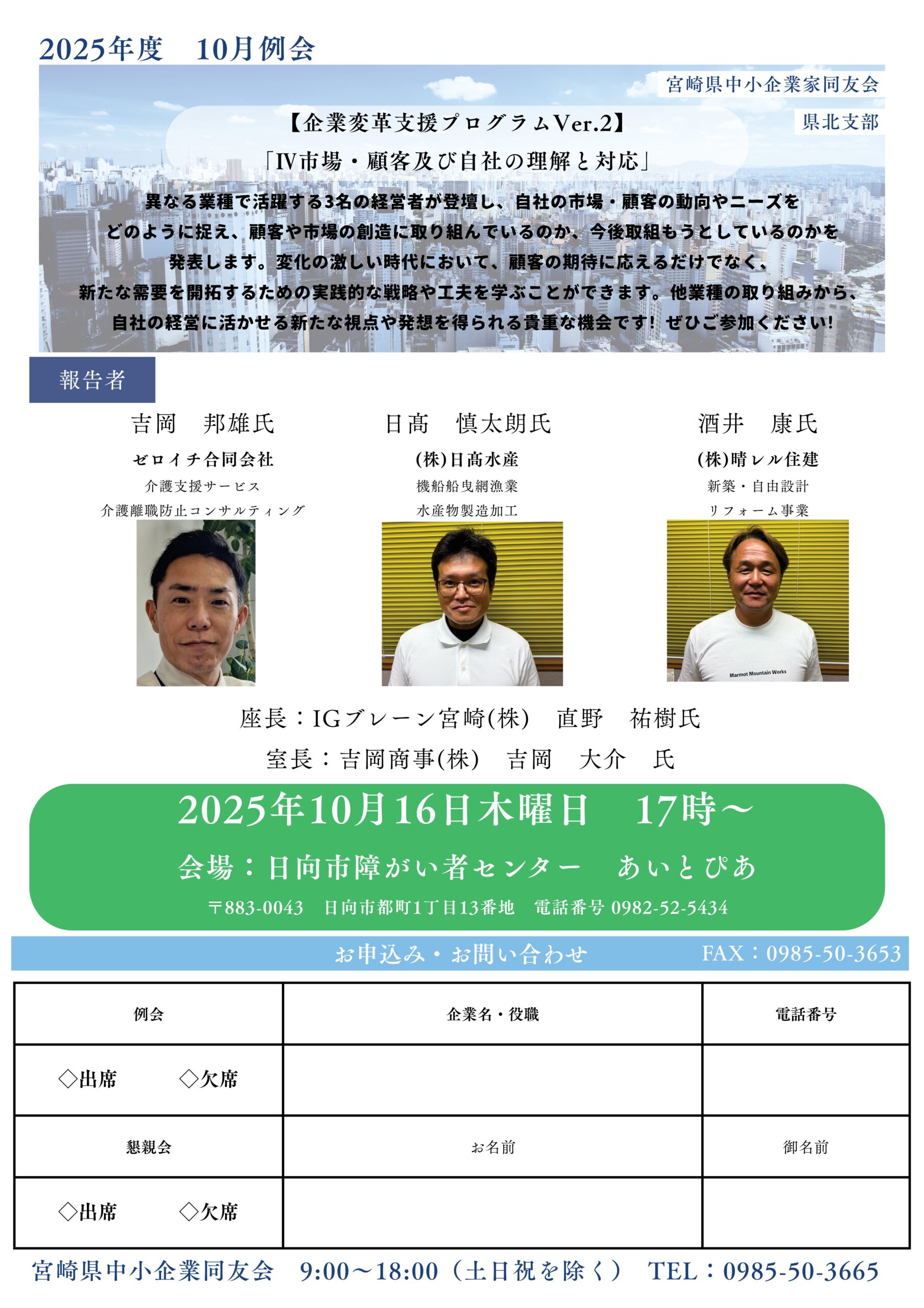 県北支部10月例会は、企業変革支援プログラムVer2の「Ⅳ市場・顧客及び自社の理解と対応」がテーマです。