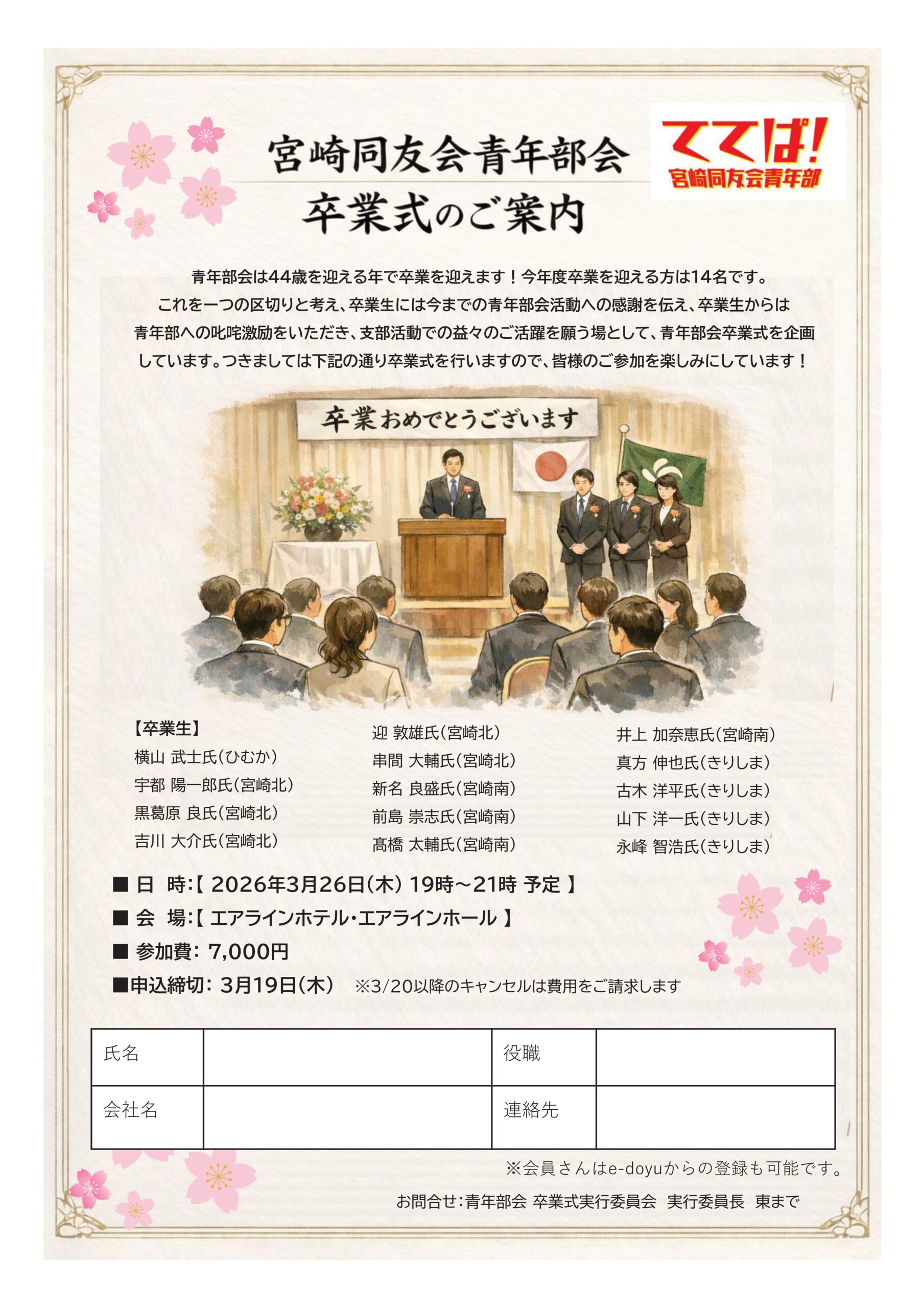 会 費:お一人7,000円(卒業生は無料)